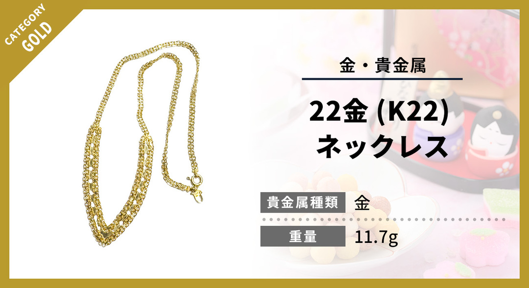 当店では22金 (K22) ネックレスの価値を正確に見極め、最新の金相場を反映した査定を行っています。